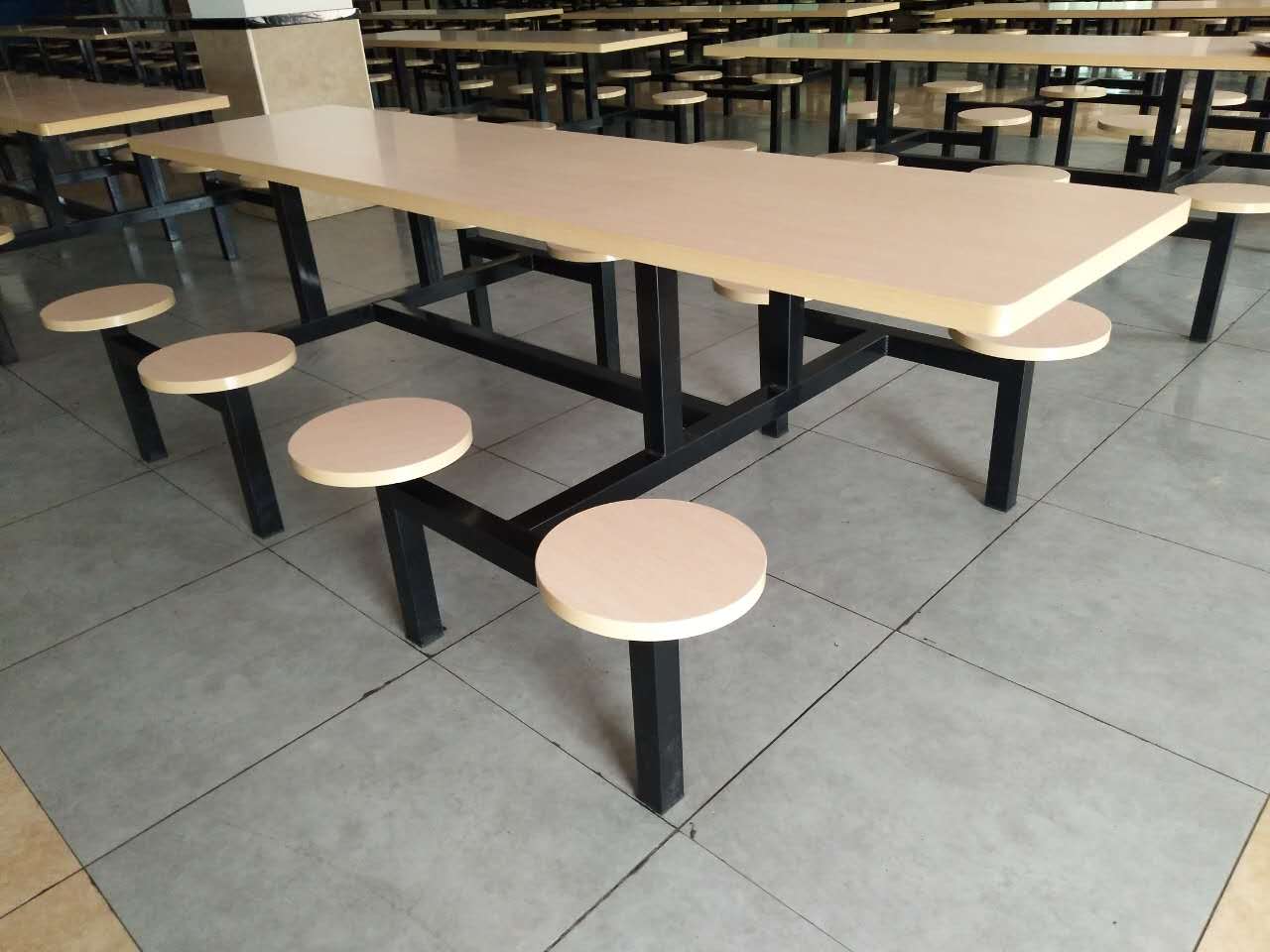 此餐桌桌面選用36mm厚優(yōu)質(zhì)多層生態(tài)餐用夾板,金橡木紋色餐廳專業(yè)防火板木皮高溫貼面制作,直徑300mm凳面選用25mm金橡木紋防水多層夾板制作,防火板木皮貼面。餐桌支架選用50*50加厚方管(1.2mm厚)制作。腳帶防水膠套。金屬支架塑膠粉為定制一級(jí)黑色環(huán)保粉末。管焊接表面要求波紋均勻,焊接處無(wú)夾渣、氣孔,并保證無(wú)脫焊、虛焊、焊穿等到現(xiàn)象。所有金屬作脫脂、除銹、酸洗、磷化、干燥等12道防銹工序處理后高溫靜電噴涂。無(wú)氣泡、無(wú)裂縫、表面光潔、靜電噴塑、烘干處理、高溫固化,表面無(wú)脫色現(xiàn)象,要求光滑無(wú)毛刺。使其美觀大方,牢固耐用,防水防油!品質(zhì)保證!