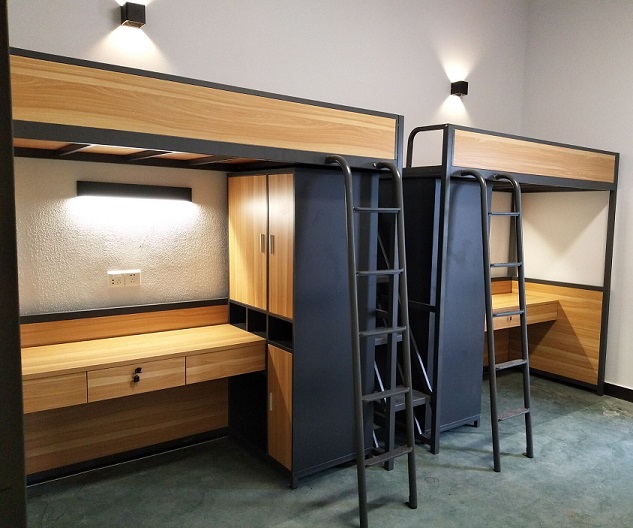 公寓床立柱采用40*40或50*50方管,也可以選用型鋼棺材。厚度1.2mm,橫桿采用25*25方管,厚度1.2mm,橫梁采用30*30方管,厚度1.2mm,中間有拉桿4根25*25,厚度1.2mm,訂檔5條,床下內(nèi)側(cè)有一根橫梁連接,材料30*50,厚度1.2mm,配有防護(hù)欄。 所有連接件采用螺絲連接,床架采用優(yōu)質(zhì)碳鋼制作床架結(jié)構(gòu)穩(wěn)固,鐵件部分焊接用二氧化碳保護(hù)焊、鋼管表面經(jīng)過除油、除銹、磷化、靜電噴塑、高溫固化而成,不易變形、承壓力好。