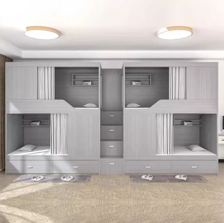 ?空間利用與效率?:太空艙公寓床采用垂直堆疊的方式,極大地節(jié)省空間,特別適合空間有限的宿舍、公寓等場(chǎng)所。其模塊化設(shè)計(jì)使得可以根據(jù)實(shí)際需求進(jìn)行靈活組合和調(diào)整,滿足不同場(chǎng)景下的使用需求?。